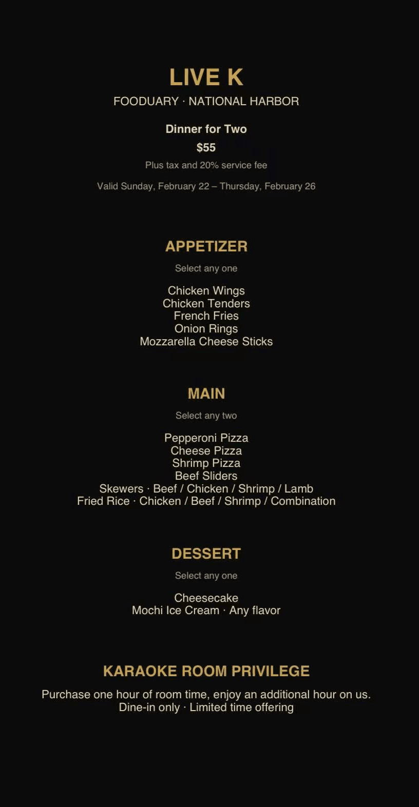 Restaurant Week Special at Live K Karaoke – National Harbor